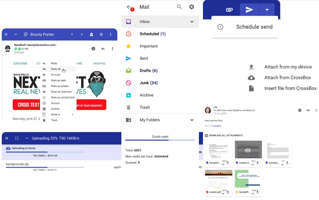 CrossBox Mail es una solución de correo electrónico moderna y potente diseñada para ofrecer una experiencia de uso intuitiva, segura y altamente productiva. Ideal para quienes buscan una alternativa práctica al tradicional webmail, CrossBox permite gestionar correos desde cualquier navegador, así como desde dispositivos Android e iOS a través de sus aplicaciones móviles oficiales.